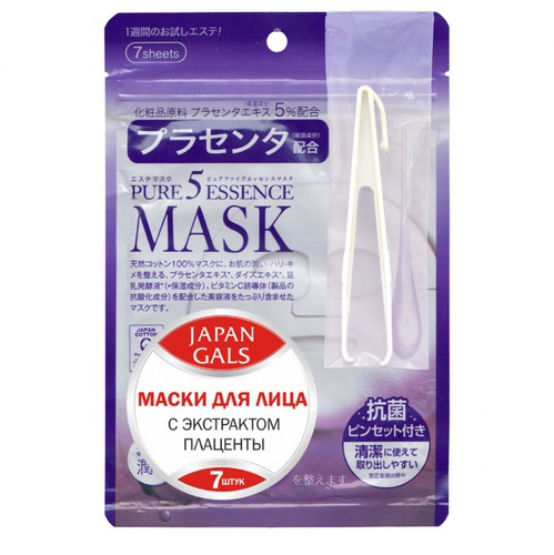 4. Japan Gals "Pure 5 Essential" Маска с плацентой, 7 шт