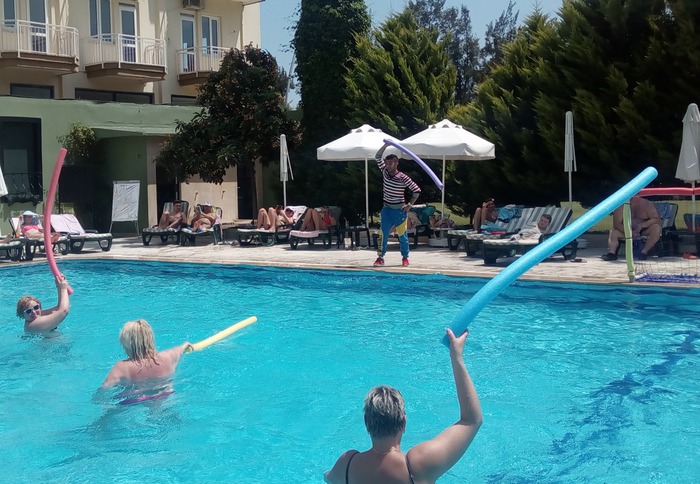Поскольку в море, в отличие от бассейна, нет тросов и бортиков, за которые можно держаться при выполнении упражнений, мы советуем захватить вам с собой в отпуск такое простое приспособление для аквааэробики, как нудлс, что в переводе с английского означает «лапша». Эта простая поролоновая аквапалка действительно чем-то напоминает лапшу и станет для нас выручалочкой, позволив значительно разнообразить упражнения в морской воде. Если место в вашем отпускном багаже лимитировано, то нудлс можно приобрести и на месте. Обычно в курортных городах нет проблем с приобретением подобных приспособлений для плавания.