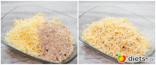 7. Сыр натираем на терке и смешиваем с панировочными сухарями.