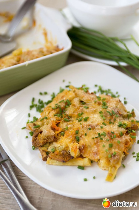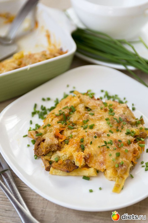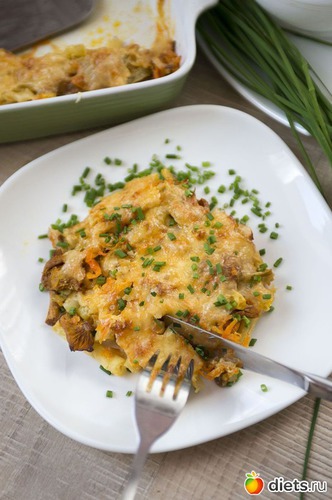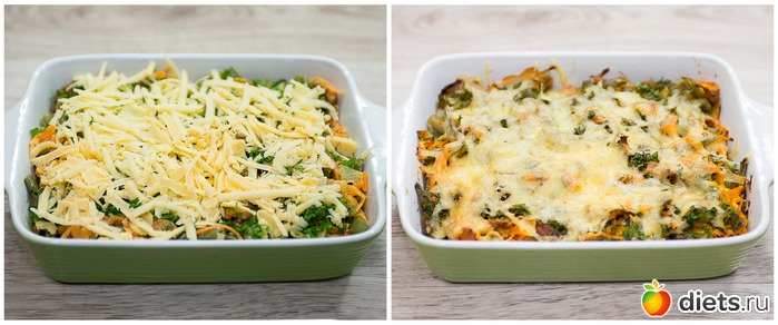 9. Сыр натираем на терке и распределяем поверх зелени. Запекаем блюдо в духовке при 180-200 градусов, пока сыр не покроется аппетитной золотистой корочкой (минут 15-20).