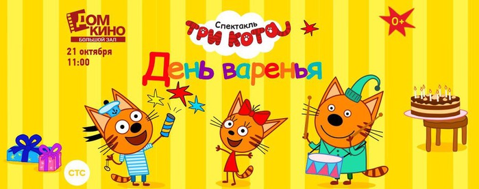 Театрально-концертная компания «Гранат» и ОАО «СТС» представляют уникальный интерактивный спектакль с любимыми героями «Три кота: День Варенья»!