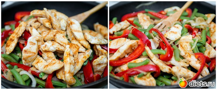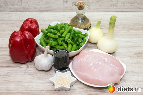 Куриное мясо замечательно сочетается с любыми овощами, также оно великолепно «дружит» со стручковой фасолью и может быть приготовлено различными способами. Сегодня на Диетс.ру представляем вашему вниманию рецепт ароматного и сытного блюда, которое украсит любой праздничный стол, а также подойдет на самый обычный ужин для всей семьи, и просто тем, кто придерживается правильного питания, следит за своим здоровьем и фигурой.