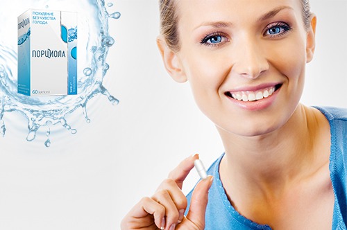Порциола. Принятые до еды, капсулы с водой образуют гидрогель, который частично заполняет желудок. Места для пищи остается меньше, а чувство голода отступает, что позволяет насытиться меньшей, чем обычно порцией.