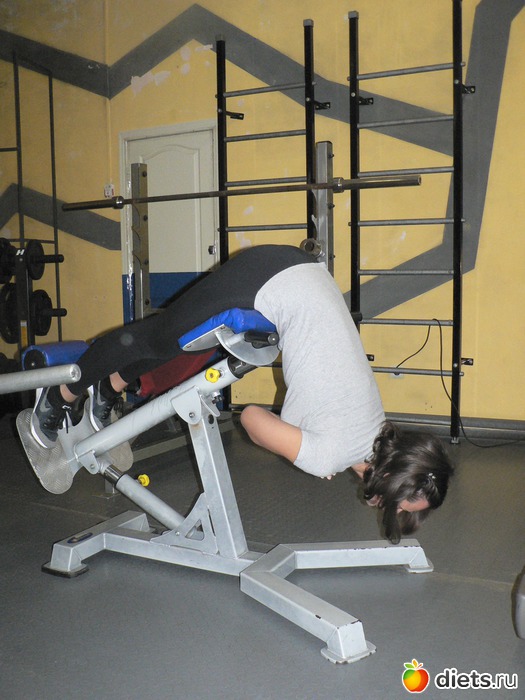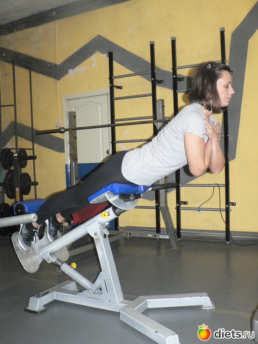 -скамейка – на скамье, свесив верхнюю часть тела вниз, полезно выполнять гиперэкстензию (чередование опускания туловища вниз и подъема до уровня ног); для увеличения эффективности этого упражнения в руках можно удерживать блин от штанги или любой другой утяжелитель.