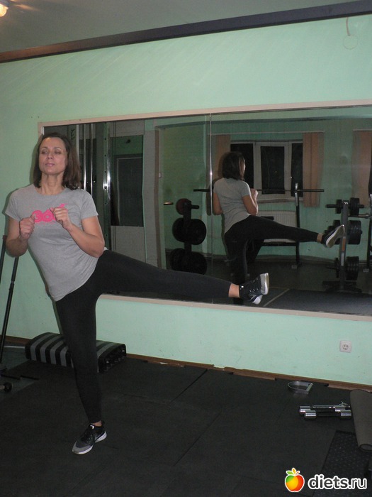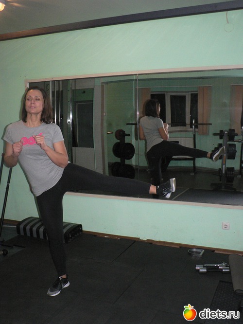 Также вы можете выполнять упражнение на одной ноге, а вторую с наклоном располагать на одной линии с туловищем. Так вы еще и потренируете баланс.