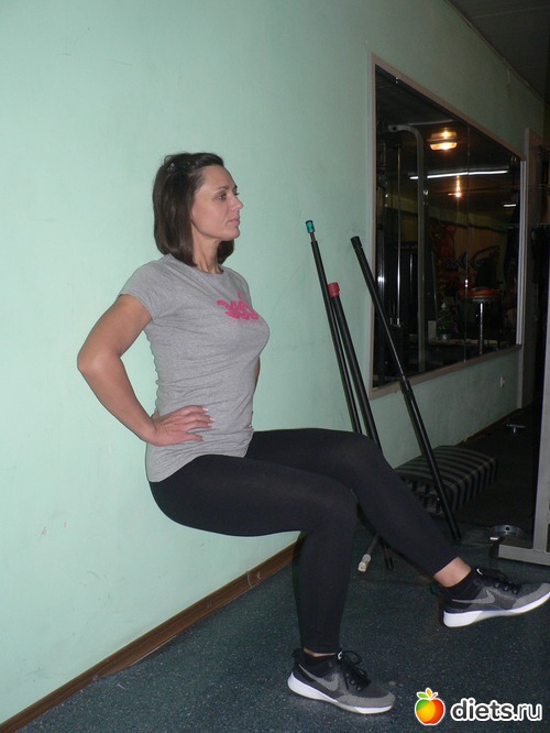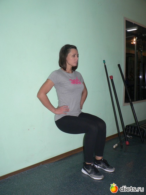 - копчик во время движения вниз направляйте наверх, для этого представьте, что хотите сесть на стул, который стоит за вами;