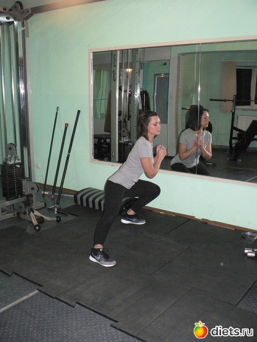 Также обычные приседания вы можете разнообразить «пружинкой» в нижнем положении (2-3 пружинящих движения ягодицами в нижней точке приседания).