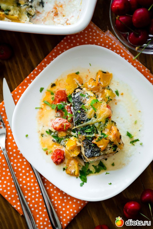 Существует очень много рецептов приготовления скумбрии с овощами: её можно запекать целиком, на овощной подушке, фаршировать, из филе крутить рулетики, заворачивая в них овощную начинку… Мы же предлагаем запечь куски рыбы в сливках с овощами, зеленью и сыром. Это довольно простое, но очень вкусное блюдо, по достоинству оценят даже за праздничным столом.