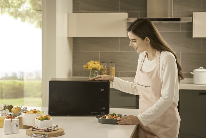 LG NeoChef, совершенствуя удобство использования, делает приготовление сложных блюд простым делом также благодаря поворотному столику с шестью точками опоры для высокой устойчивости. Тем самым снижается возможность что-то пролить, если емкость с готовящейся пищей установлена не точно по центру. Внутри установлена энергосберегающая светодиодная лампа. Она в три раза ярче обычных ламп, поэтому пользователям легко наблюдать за процессом приготовления пищи. Хотя размеры NeoChef такие же, как и у стандартных моделей микроволновых печей, в распоряжении пользователей будет больше внутреннего пространства. За счет своих компактных размеров микроволновую печь можно разместить на любой кухне, но в тоже время она может вмещать большие и высокие блюда. А антибактериальное легкоочищаемое покрытие EasyClean делает более легкой процедуру очистки микроволновой печи после приготовления домашнего ужина.
