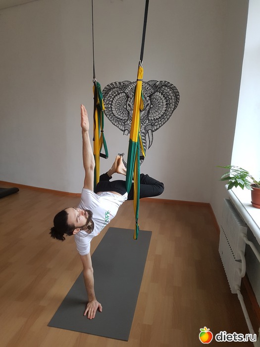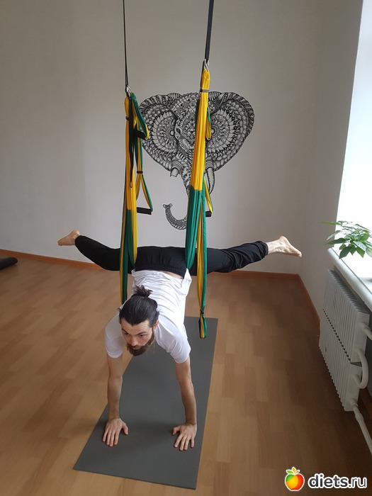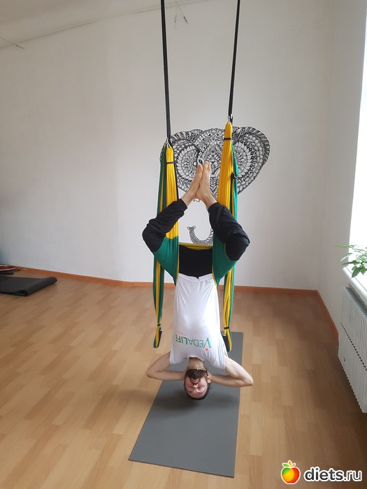 В своем городе вы наверняка могли видеть рекламу подобных уроков, на которой практикующий висит вниз головой, обвившись тканью гамака. На первый взгляд может показаться, что подобные эксперименты под силу только продвинутым практикам йоги. Однако это не так.