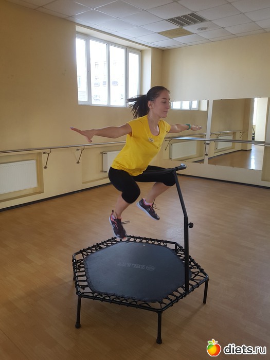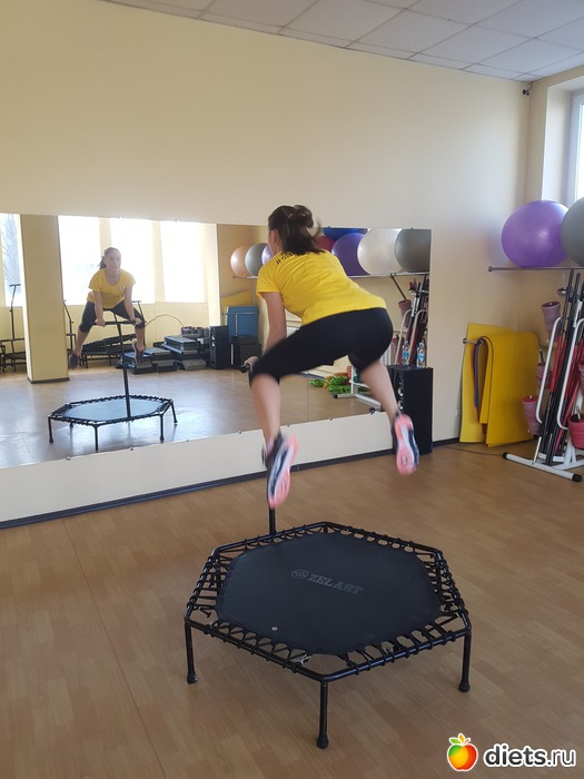 Оказалось, что называется такая тренировка Skyjumping. Это молодое направление фитнеса, появившееся в 2000-х. Считается, что придумали ее чехи. Продолжительность Skyjumping составляет примерно 50 минут, из которых больше половины времени уходит на прыжки, т.е. кардио нагрузку, и минут 15 уделяется силовому тренингу на основные мышечные группы. Поскольку интенсивность кардио на батутах довольно высокая и превосходит даже прыжки через скакалку и бег трусцой, то людям с варикозным расширением вен, проблемами с сердцем, а также беременным дамам Skyjumping противопоказан.