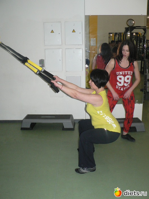 Обратите внимание, что если ваш вес чрезмерно далек от нормы, либо есть проблемы с суставами, то приседания лучше выполнять, используя петли TRX все три подхода.