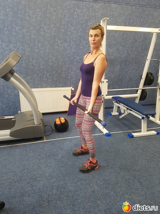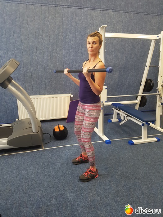 И еще одно полезное упражнение для спины – жим утяжелителя вверх. Для его выполнения можете использовать гантели, бодибар, медбол или гриф от штанги.