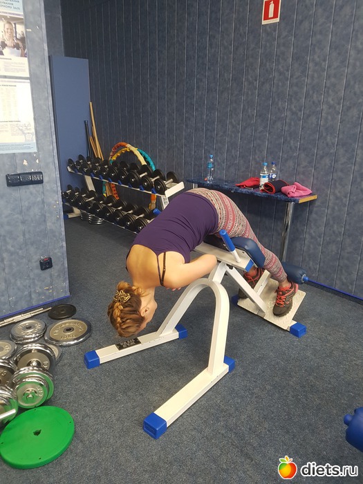 Если такого приспособления нет, то все три подхода делайте на одном и том же тренажере. Усложнить упражнение можно, удерживая руками на груди блин от штанги.