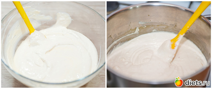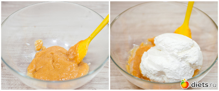 4. Теперь лимонный курд соединяем с творогом (если творог крупинками, перетираем его через сито).