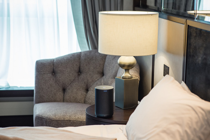 Разговор про борщ продолжился на кухне номера «Сюит Дипломат» отеля «Хаятт Ридженси Москва Петровский Парк». Благодаря элегантному и в то же время лаконичному дизайну, LG XBOOM AI ThinQ WK7Y будет выглядеть стильно в любом интерьере, который, к тому же можно сделать «умным», подключив умные лампы, розетки и т. д., совместимые с управлением через Алису.