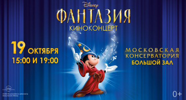 Компания Disney в России представляет киноконцерт «Фантазия» в Большом зале Московской консерватории 19 октября 2019 года. В формате киноконцерта фильм демонстрируется на экране, а вся музыка из него синхронно исполняется симфоническим оркестром на сцене вживую.