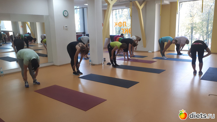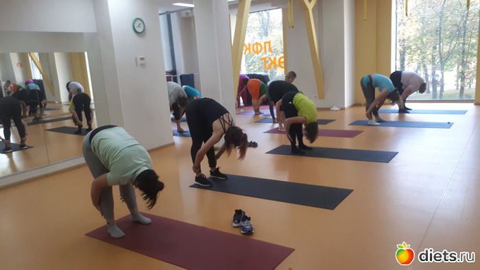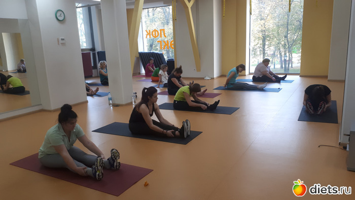28. Растяжка ног в положении сидя на полу и наклонившись к прямым ногам грудью. Продолжительность - 5 циклов дыхания.