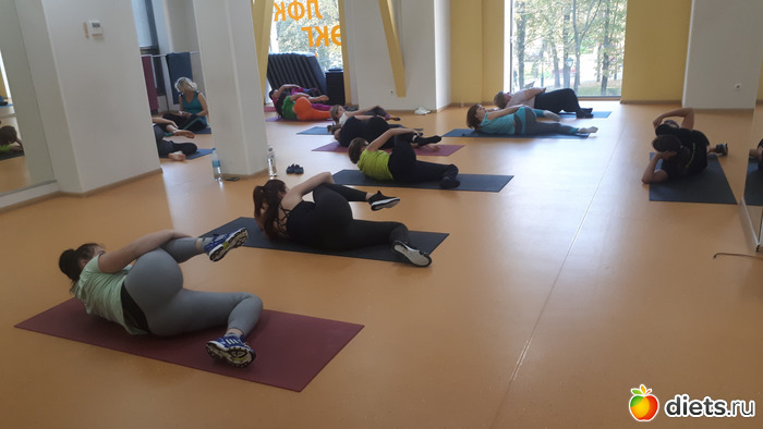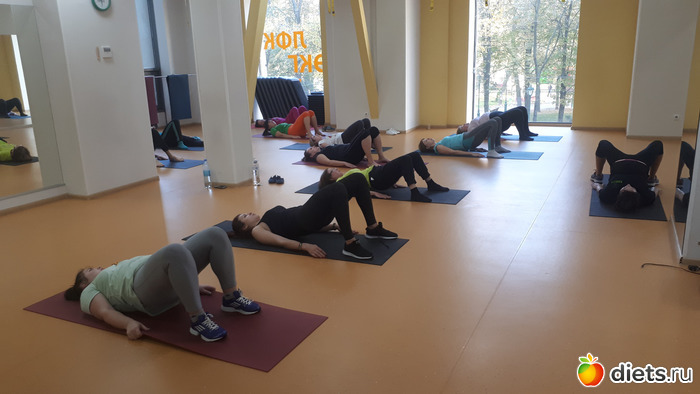 10. Укрепление брюшных мышц путем подъема ягодиц над полом, лежа на спине с поднятыми вверх ногами. Количество повторений – 10 раз.