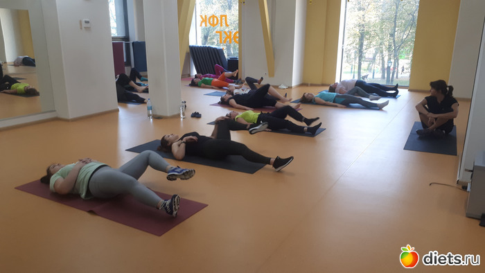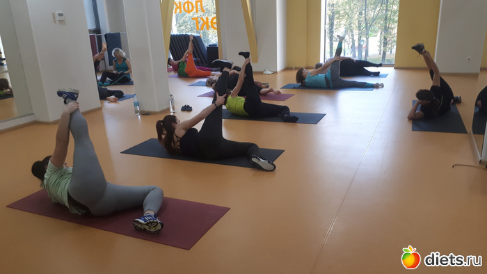 18. Растяжка ног, лежа на спине и поочередно потянув прямую ногу на себя.Продолжительность - 5 циклов дыхания.