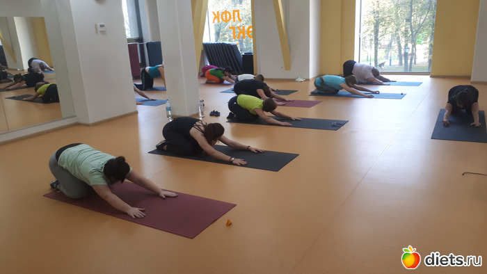 26. Растяжка спины в Позе ребенка, сидя на коленях. Продолжительность - 5 циклов дыхания.