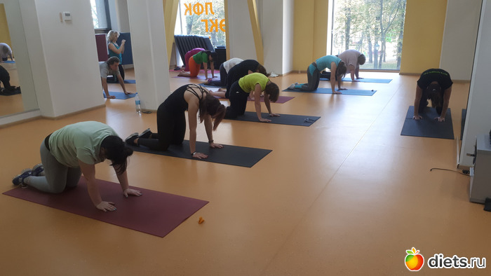 27. Поза кошки, стоя на четвереньках. Продолжительность - 5 циклов дыхания.