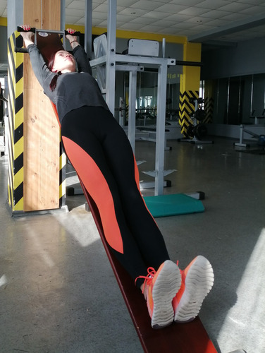 Далее поднимите над скамьей обе прямые ноги на небольшую высоту.