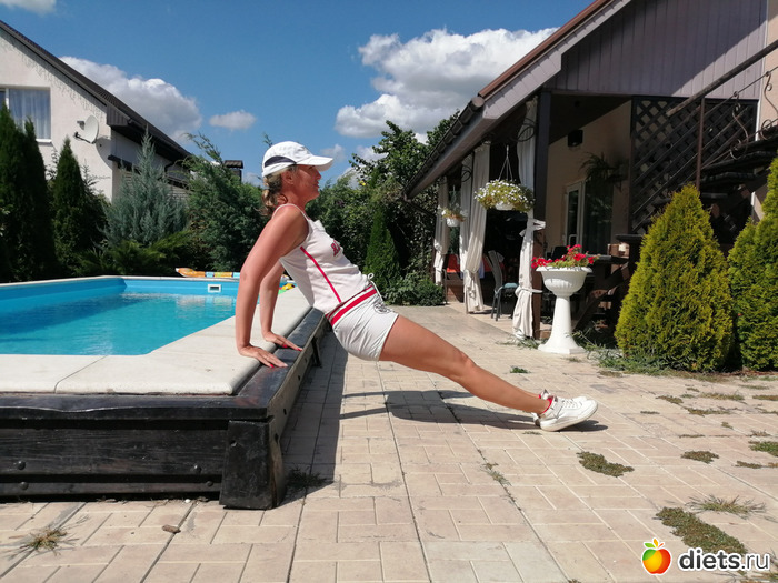 Займите положение прямая планка с опорой на ладони прямых рук (можно опереться на возвышенность, например, край бассейна). Сохраняйте положение 30 секунд.