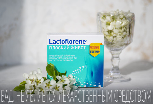 Lactoflorene Плоский живот — комплексная добавка, разработанная в Италии и помогающаялегкому пищеварению без вздутия живота.
