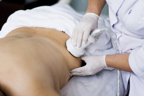 Ультразвуковая кавитация. Под воздействием специальных ультразвуковых аппаратов происходит активное сокращение объемов бедер и живота. В ходе процедуры скопившийся жир начинает как бы прогреваться в глубинных подкожных слоях, в результате чего липидный слой постепенно начинает изменять свое положение, и разжиженные вещества перемещаются в межклеточные области, после чего достаточно успешно выводятся с помощью лимфы.