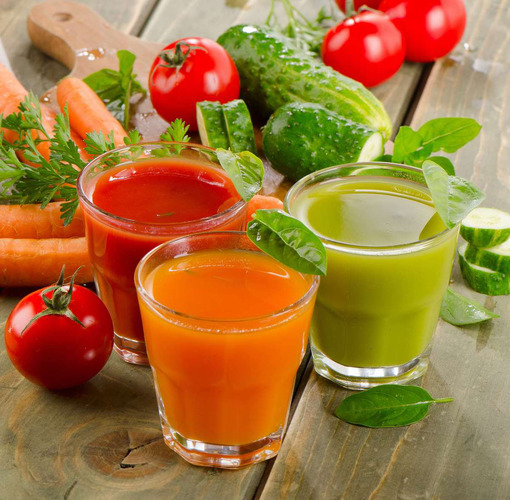 Несмотря на то, что практически все очень любят и предпочитают пить именно фруктовые соки, при похудении, а также при соблюдении самых разнообразных диет их рекомендуется разбавлять различными овощными соками. Это обусловлено тем, что фруктовые соки содержат весьма внушительное количество углеводов, что в свою очередь вряд ли поспособствует полноценному похудению. А овощные соки могут похвастаться гораздо меньшей калорийностью, именно поэтому специалисты почти всегда и рекомендуют смешивать их с фруктовыми. И еще один отличный вариант – смешать в блендере фрукты, овощи и ягоды, приготовив вкусный и питательный смузи!