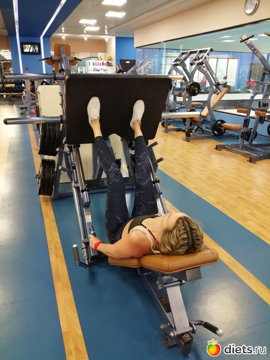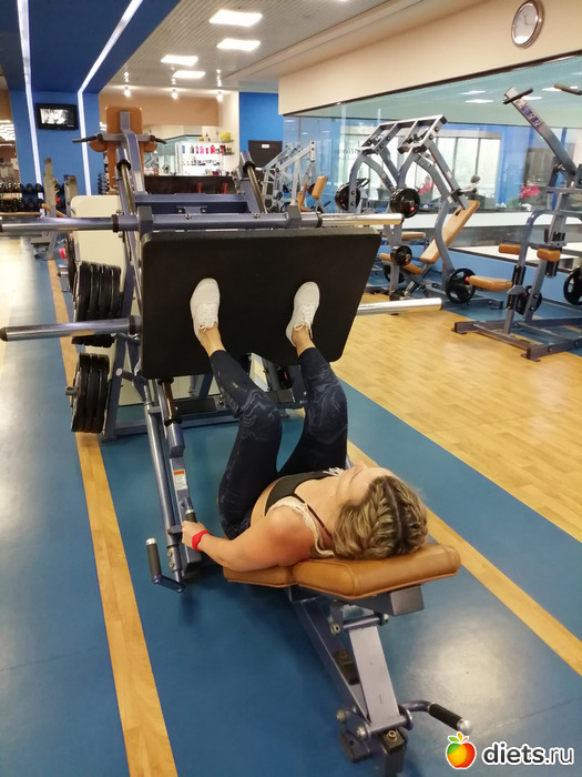 Упражнение выполняется, лежа на скамье специального тренажера. Согнутые в коленях ноги нужно расположить на платформе. Затем платформу следует снять с предохранителя, выпрямить ноги в коленях и выжать платформу наверх. Вернитесь в исходное положение. Повторите жим 15 раз.
