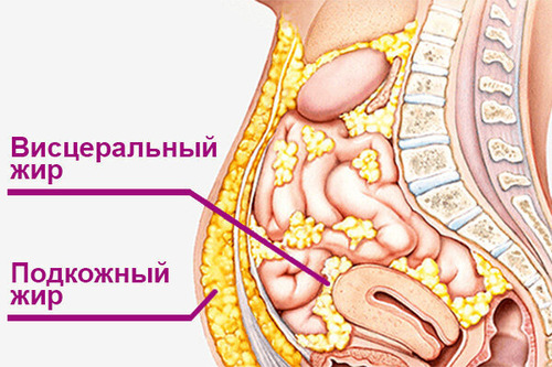 Висцеральный. А такой жир расположен уже непосредственно в брюшной полости, более того, он обволакивает такие важнейшие крупные внутренние органы, как кишечник, поджелудочная железа и печень с почками. С одной стороны, это не так-то уж и плохо, потому что небольшие объемы висцерального жира позволяют выдерживать определенное расстояние между жизненно важными органами, однако в том случае, если его будет очень много, он запросто может привести к повышению кровяного давления и к разного рода воспалительным процессам, что существенно увеличивает риск появления самых разнообразных и достаточно серьезных проблем со здоровьем. Кстати, переизбыток висцерального жира принято именовать центральным ожирением!