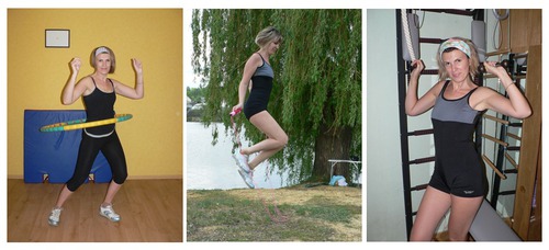 Через 45 минут после ужина наступает третий этап моей антицеллюлитной программы-2011. Состоит он в ежедневной 20-минутной спортивной тренировке. Она не слишком изнурительна, но регулярна. Обязательно содержит приседания, упражнения для пресса, отжимания от пола, висение на шведской стенке для профилактики остеохондроза и растяжки. Также время от время я добавляю под настроение к разминке прыжки через скакалку, упражнения на фитболле или вращение на талии обруча хула-хуп.