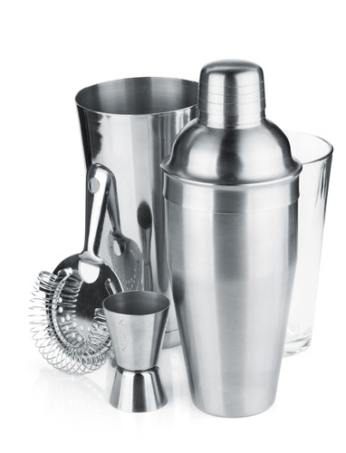 Во-первых, вам потребуется шейкер - специальная посуда (представляющая собой плотно закрывающийся контейнер со встроенным фильтром) для смешивания и встряхивания напитков, в рецептуре которых есть такие составляющие, как сироп, фруктовые соки (за исключением томатного), сливки и яичный желток. Следует помнить, однако, что помимо томатного сока в шейкере нельзя смешивать ингредиенты с содержанием углекислого газа (содовая вода, шампанское и т.п.). Идеальной считается вместительность шейкера 0,5-0,75 л, так как позволяет приготовить две-три порции коктейля. Покупая шейкер, не постесняйтесь опробовать его, попросив у продавца воды: проверьте, не протекает ли жидкость из-под крышки во время взбивания содержимого.