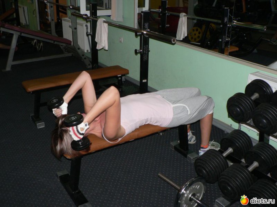 но данный вариант очень хорош,так как задействованы самые проблемные места рук, которые обычно у всех дрябленькие. Это упражнение для трицепса,а разводка -это упражнение для мышц груди.