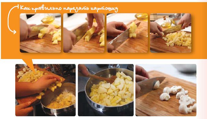 Подавать его можно с гренками из хлеба, а можно… с жареными грибами! Для этого помойте шампиньоны, обжарьте их на растительном масле и выложите в самую середину тарелки с картофельным супом.