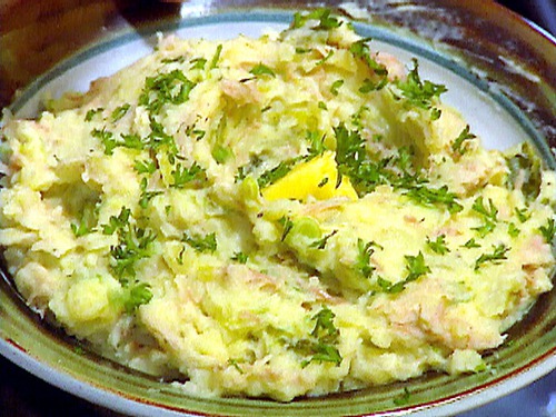 Знаменитые клубни в Ирландии появились во второй половине 16 века и стали популярными среди бедных людей, которых спасали от голода. Традиционными блюдами стали картофельные оладьи (boxty), картофельное пюре с капустой и сливочным маслом (colcannon) и картофельное пюре со сливочным маслом и зеленым луком (champ). С картофелем тушат баранину, готовят хлеб, булочки, пироги и клецки, добавляют к нему бекон и сосиски.