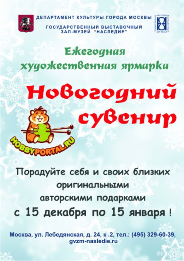 С 15 декабря 2012 года по 15 января 2013 состоится художественная ярмарка рукодельных подарков «Новогодний сувенир»!!!
