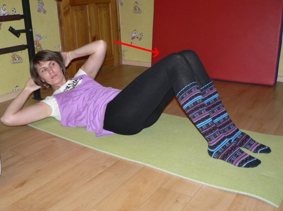 Также достаточно эффективны скручивания путем подъема прямых ног до параллели с полом и одновременного поднимания плеч от пола. Руки при этом расположите на полу вдоль корпуса.