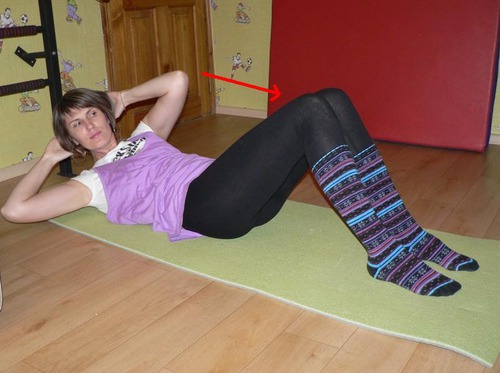 Тренировку боковым мышцам живота обеспечат аналогичные озвученным в третьем упражнении скручиваниям, с той лишь разницей, что согнутые в коленях ноги нужно будет опустить сначала на пол вправо от туловища. А после 10 подъемов – влево от туловища – и предпринять еще 10 подъемов.