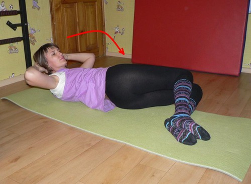 Еще одним, весьма эффективным «сжигателем» жира на талии, являются всевозможные скручивания. Для их выполнения лягте на пол, согните ноги в коленях и расположите стопы на полу, параллельно друг другу. Руки согните в локтях и расположите ладони на затылке. Из этого положения оторвите плечи и лопатки от пола, потянитесь грудью к коленям, подбородок при этом держите приподнятым. Повторите не менее 20 раз.