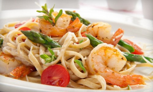 Паста с морепродуктами, чай с бергамотом