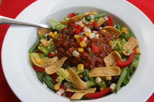 От вареного початка кукурузы аккуратно отделите все зерна, мелкими кубиками нарежьте томат, сладкий перец и лук, измельчите очищенный от семян перец чили, чеснок и кинзу. Все овощи смешайте с фасолью, оливковым маслом, бальзамическим уксусом, соком лайма и солью. Готовую сальсу подавайте с кукурузными чипсами.