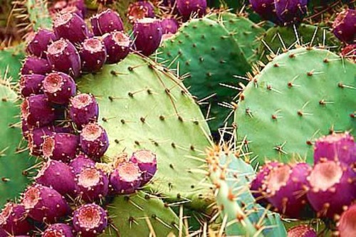 опунция, плоды которой похожи на колючие груши. Мякоть опунции хоть и сладкая, но и изысканно острая, при этом обладает особым освежающим вкусом. Употребляют плоды в сыром виде, добавляют в салаты и другие блюда. Опунция богата
