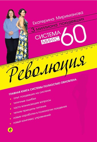 Новая книга Екатерины Миримановой не случайно называется «Революция». Никогда еще книга о похудении не была написана так последовательно и доступно! Она говорит с худеющими на одном языке, поскольку основана на реальном опыте сотен людей, которым удалось достичь фигуры своей мечты по «Системе минус 60».