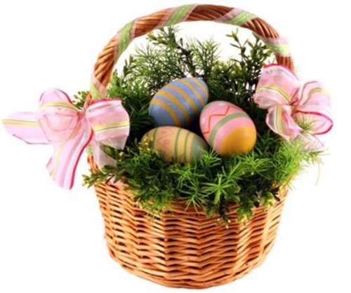 «Чудо-корзинка». В обычную плетеную корзинку небольшого размера с высокой ручкой уложите шерстяные нити разных зеленых оттенков, они будут играть роль весенней травы. Поверх импровизированной «зелени» положите разноцветные крашенки, искусственные цветы, тканевые бабочки. Ручку корзины обмотайте зеленой ленточкой и красивым бантом. Такая необычная пасхальная корзинка может стать украшением праздничного стола, подарком близкому человеку либо креативным декором для кухни.