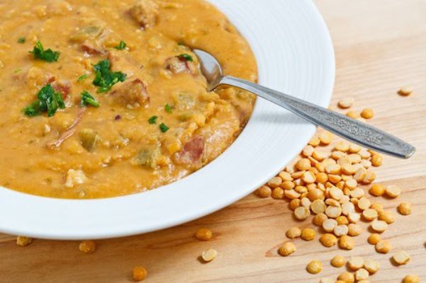 Приготовление: замочите горох в теплой воде на 1-2 часа. Натрите морковь на крупной терке, лук измельчите, копчености нарежьте. Овощи и копчености выложите в мультиварку, добавьте растительное масло. Готовьте на программе «Жарить», периодически помешивая, около 20-25 минут. Добавьте горох, картофель, специи, залейте водой и аккуратно перемешайте силиконовой лопаткой. Включите режим «Суп» и готовьте до окончания программы, после чего оставьте томиться еще на 40-50 минут в режиме «Поддержание температуры».