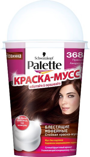 Первая стойкая краска в формате шейкер Palette Краска-Мусс представляет новые оттенки для создания незабываемых образов в домашних условиях. Благодаря Palette Краске-Мусс процесс окрашивания стал легким и быстрым, а результат – стойким и ослепительным! Подарите волосам до 50% больше сияния c новыми оттенками от Palette Краска-Мусс.