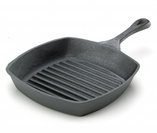 Сковорода-гриль. Главная особенность этой сковородки – рифленое дно, благодаря которому тепло равномерно распределяется, что дает возможность жарить мясо, овощи и рыбу практически без масла. Желобки дна сковороды собирают сок, выделяющийся из продуктов при жарке. Собранный сок испаряется, в результате чего нет подгоревшей корочки, и блюдо получается более сочным.